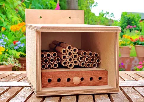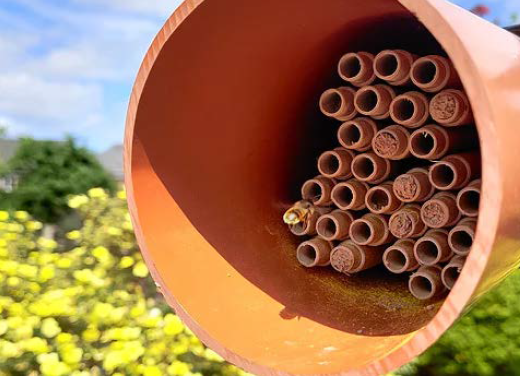 As an allotment gardener of many years, I have always been keen to work with nature and encourage any beastie that’s beneficial to my endeavours. The honeybee is, of course, the one we all know and love, until we get stung, which can have serious consequences.There is a whole world of wild bees, which are less well known, my favourites are the Red Mason Bees. These are gentle, non-aggressive solitary bees that make their nests in hollow spaces rather than in hives. They pollinate far more efficiently and effectively than honeybees, and they happily work alongside their nectar-gathering counterparts. In a nutshell:
