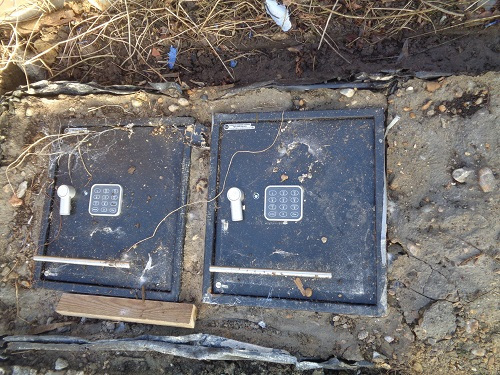 John managed to slice a square out of one of the doors of the ground safes & Richard punched through it, to reveal an empty container – we are yet to discover the contents of the second one!!!!